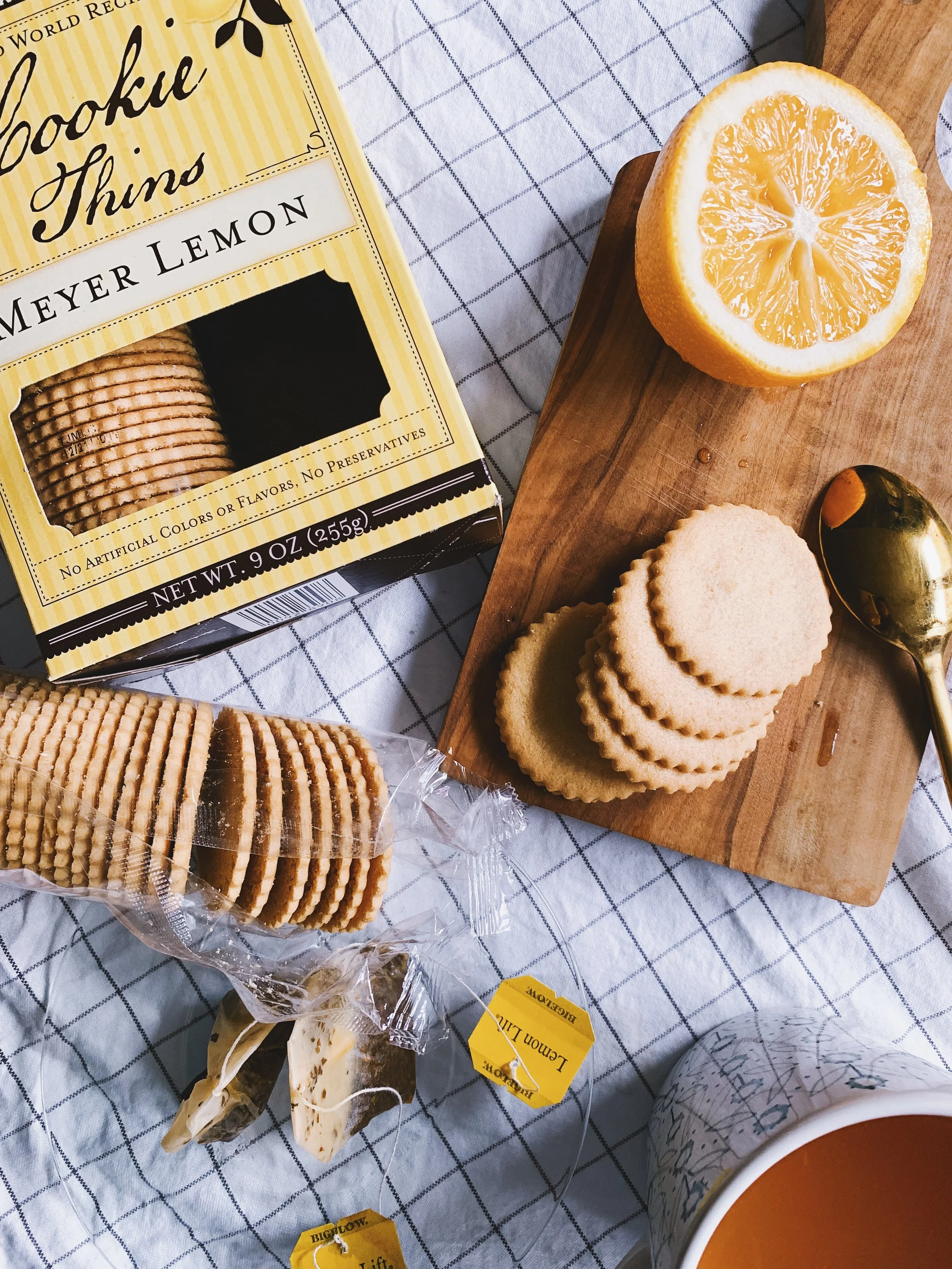 There’s nothing like a little tea time at home with Meyer lemons and cookies to brighten up the day when you’re feeling a little under the weather. I always like to make a little lemon tea with a squeeze of fresh Meyer lemons and a little honey. You can usually determine the sweetness of the lemons by its pungent scent. Some are sweet enough, they can easily be eaten like a orange.